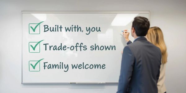 We build the plan with you, in the room—never for you. No surprises, no pressure—just decisions made together.